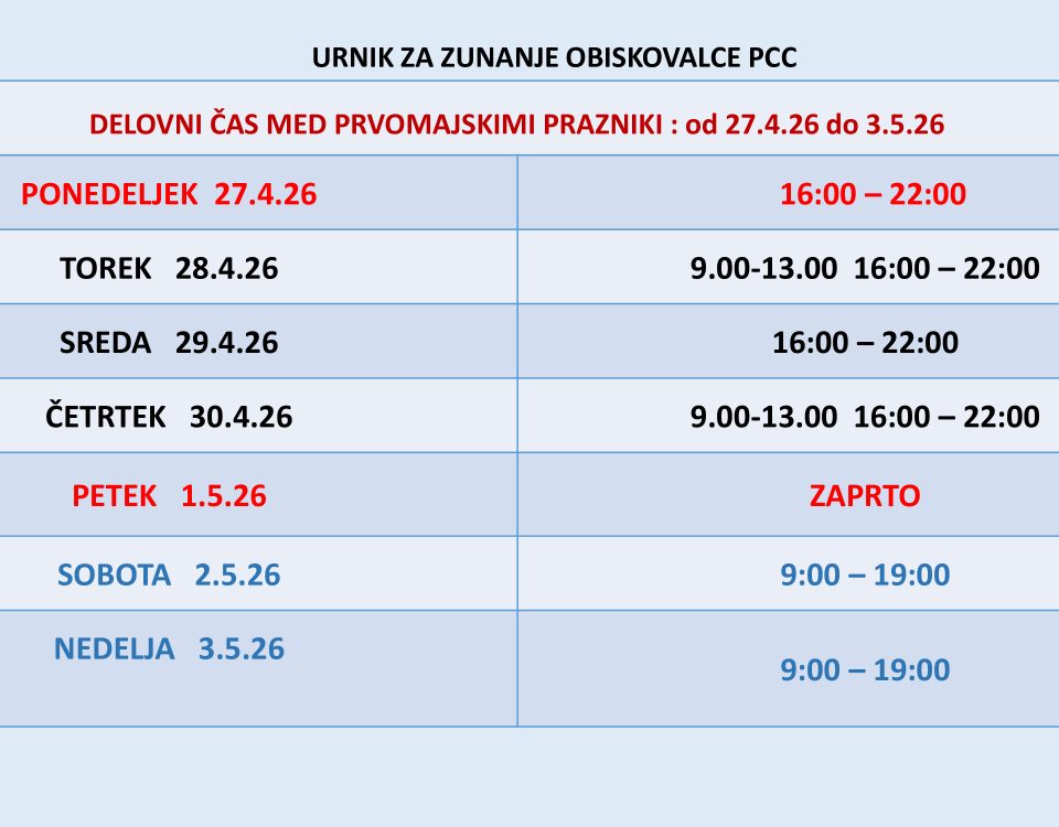 Četrtek: 9.00 - 12.00 in 16.00 - 22.00